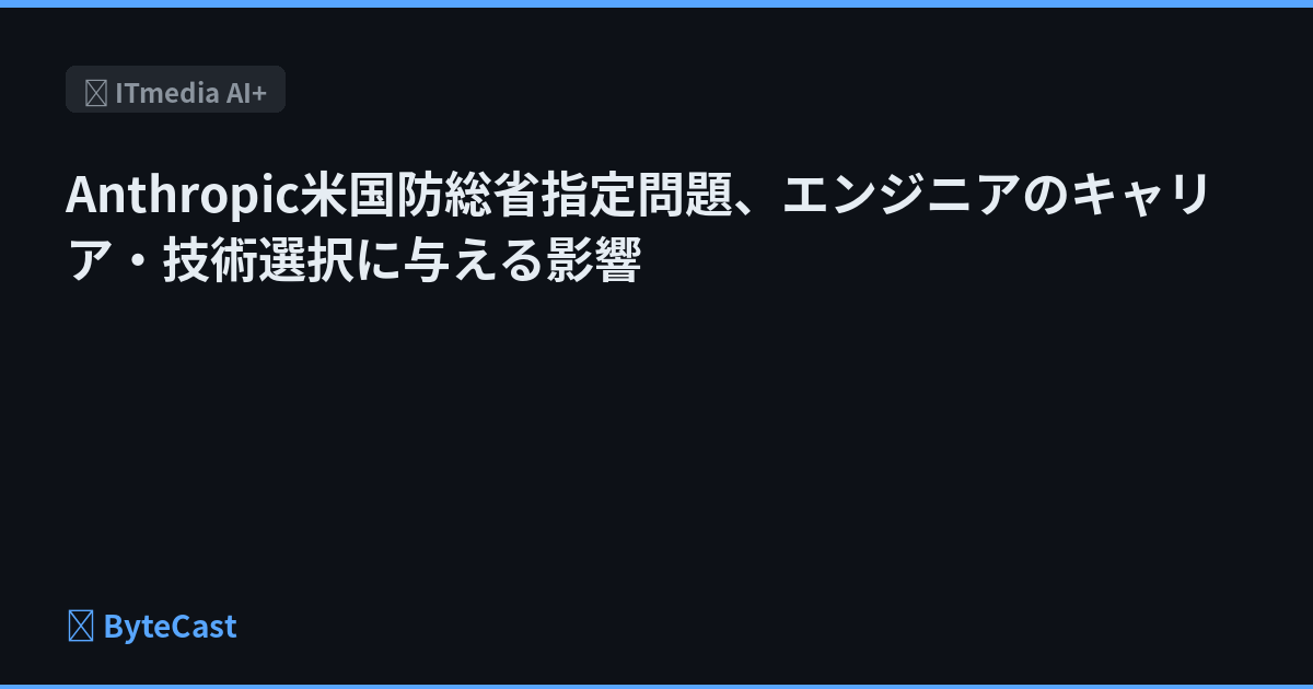 Anthropic米国防総省指定問題、エンジニアのキャリア・技術選択に与える影響