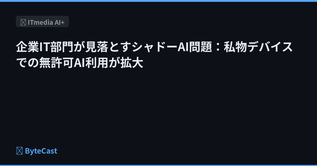 企業IT部門が見落とすシャドーAI問題:私物デバイスでの無許可AI利用が拡大