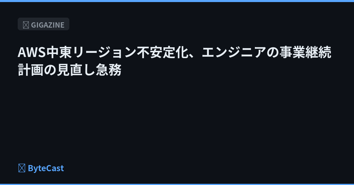 AWSのUAE・バーレーン施設がドローン攻撃により物理損傷。中東リージョンの運用リスク顕在化により、クラウドアーキテクチャの地政学的リスク管理が重要課題へ。