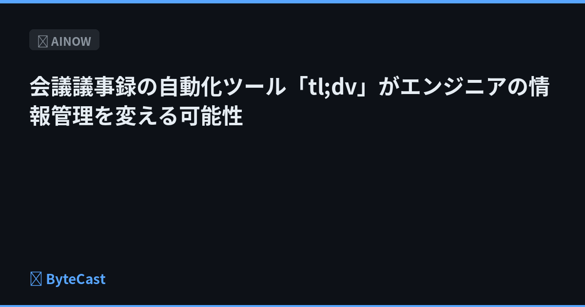 AI議事録ツール「tl;dv」の活用法を解説。会議の自動記録・要約機能により、エンジニアの事務作業削減とドキュメント管理の効率化が期待される。