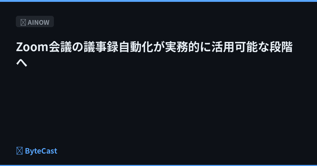 AI議事録ツールによるZoom会議の自動化が、業務効率化の実践的なソリューションとして提供されている。エンジニアが導入検討すべき自動化パターンを整理。