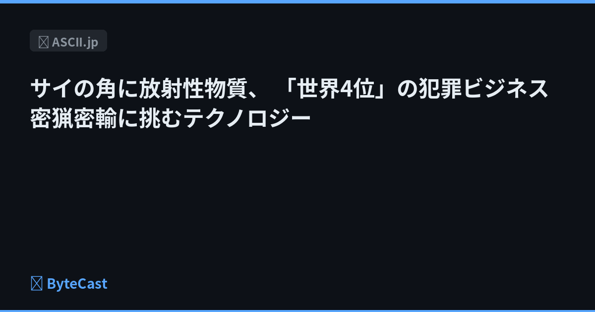 年間200億ドル規模、薬物・武器・人身売買に次ぐ「世界4位の犯罪ビジネス」——それが野生動物の密猟・密輸だ。だが、サイの角への放射性物質埋め込みからAIによる海洋監視まで、新世代のテクノロジーが保護活動家たちの武器になりつつある。