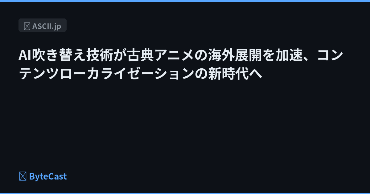 AI吹き替え技術が古典アニメの海外展開を加速、コンテンツローカライゼーションの新時代へ