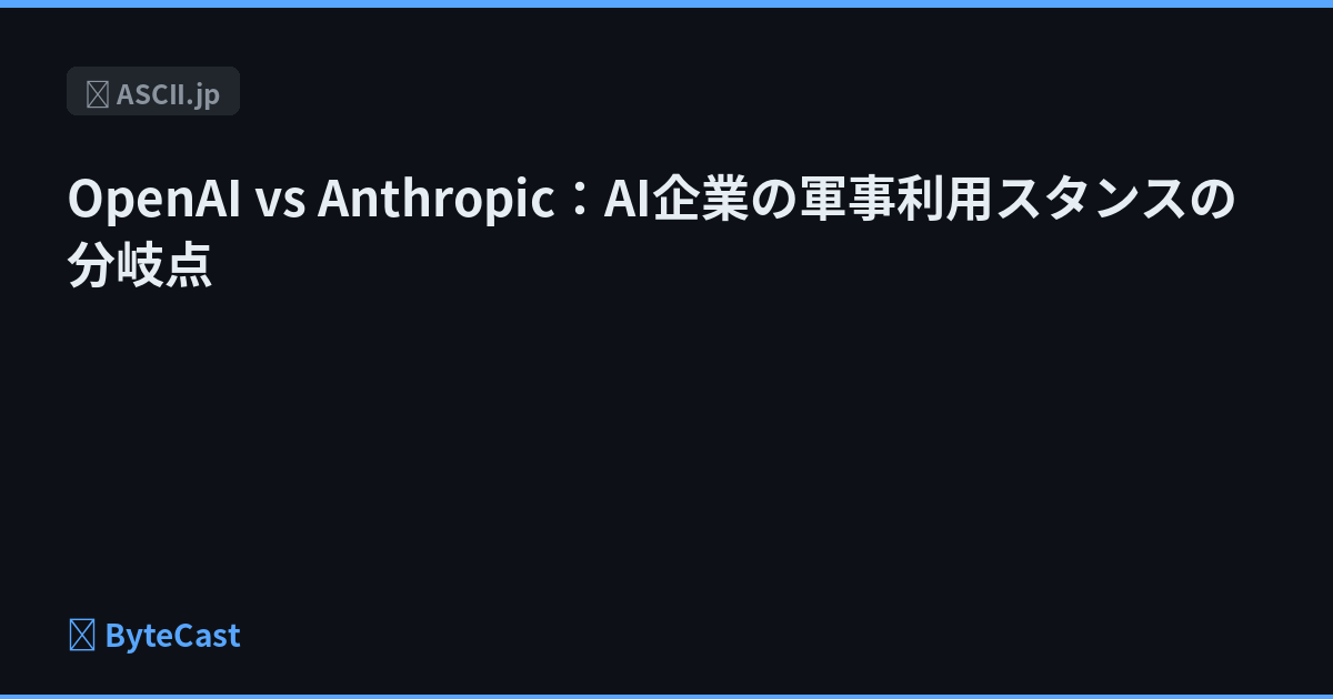 OpenAI vs Anthropic:AI企業の軍事利用スタンスの分岐点
