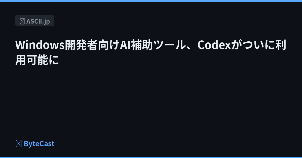 Windows開発者向けAI補助ツール、Codexがついに利用可能に