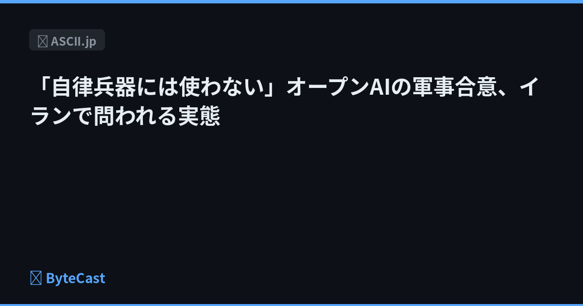 「自律兵器には使わない」オープンAIの軍事合意、イランで問われる実態