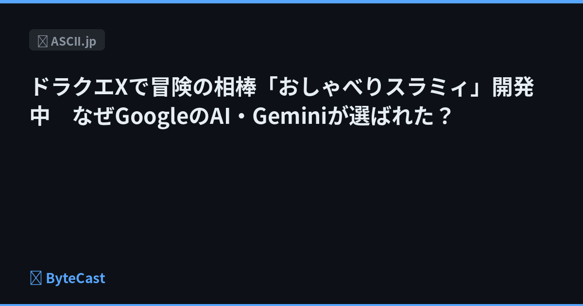 ドラクエXで冒険の相棒「おしゃべりスラミィ」開発中 なぜGoogleのAI・Geminiが選ばれた?