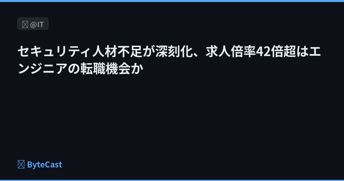 2025年のIT求人倍率10.4倍のうち、セキュリティ領域は42倍超に。人材逼迫がもたらすキャリア機会と企業リスクを分析。