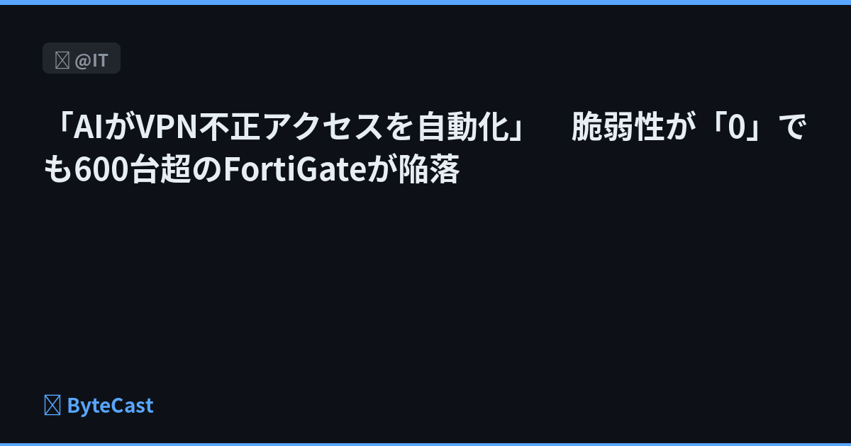 「AIがVPN不正アクセスを自動化」 脆弱性が「0」でも600台超のFortiGateが陥落