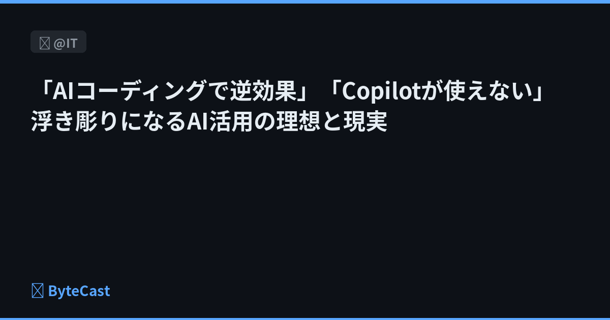 「AIコーディングで逆効果」「Copilotが使えない」 浮き彫りになるAI活用の理想と現実