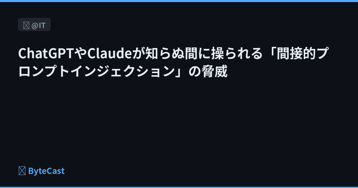 ChatGPTやClaudeが知らぬ間に操られる「間接的プロンプトインジェクション」の脅威