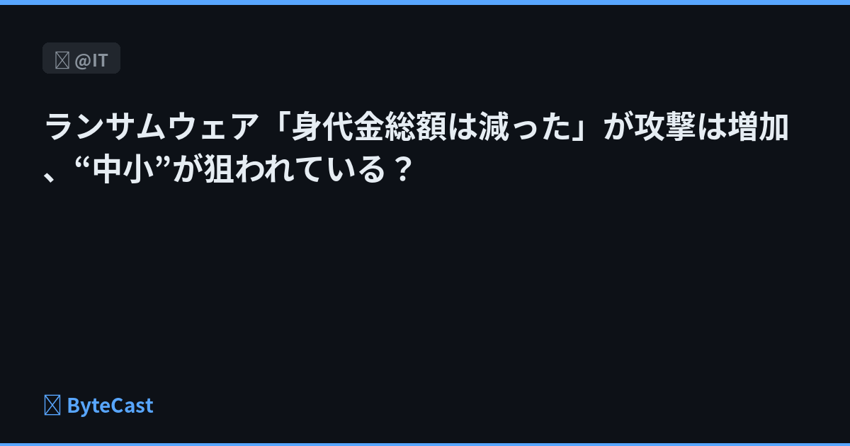 ランサムウェア「身代金総額は減った」が攻撃は増加、“中小”が狙われている?