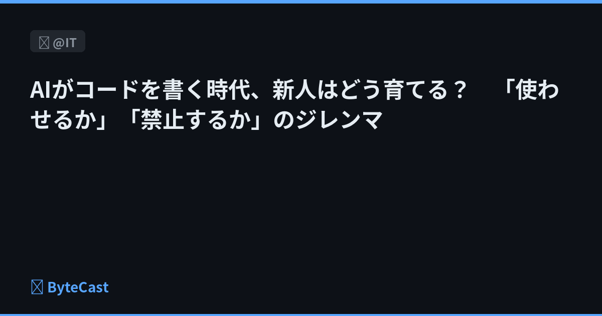 AIコーディングが当たり前になった今、新人教育の現場に新たな課題が生まれている。「使わせるか」「禁止するか」という問いに、明確な答えはあるのか。そのヒントを、現場の事例と筆者なりの考えから探る。