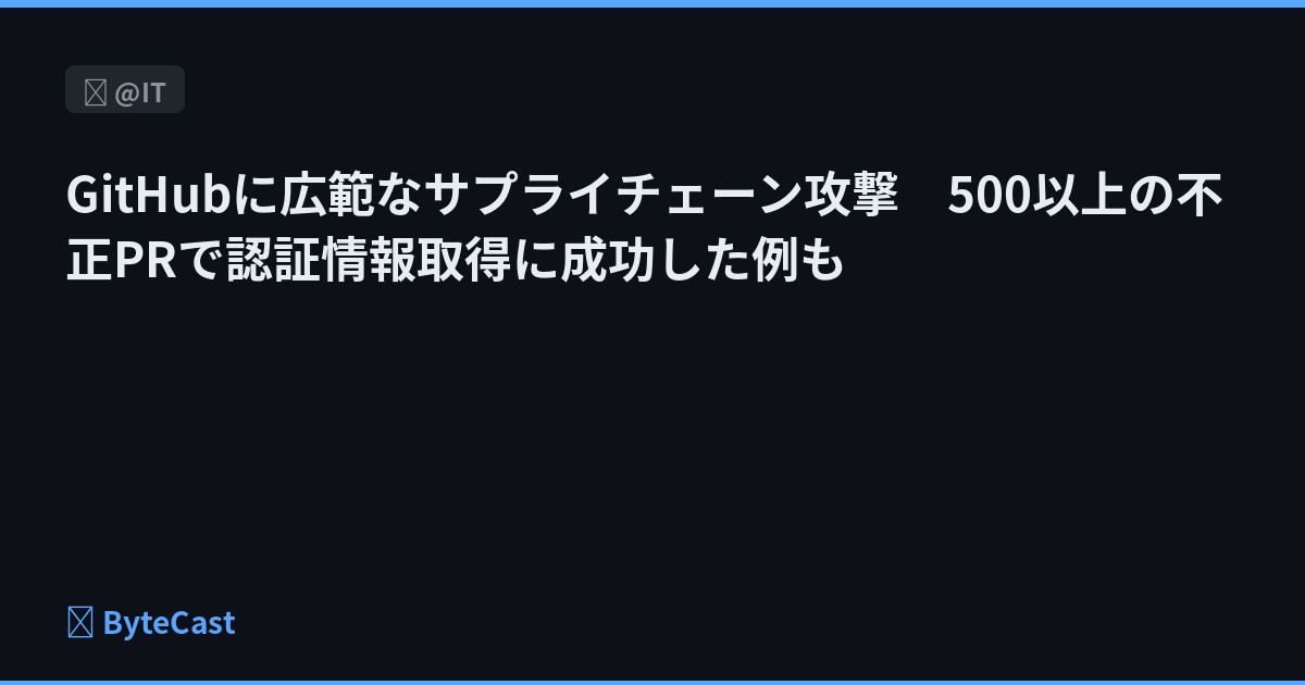 GitHubに広範なサプライチェーン攻撃 500以上の不正PRで認証情報取得に成功した例も