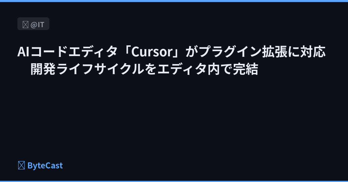 AIコードエディタ「Cursor」の開発チームは、プラグインによる拡張に対応したと発表した。プラグインにより、エージェントによる外部ツールへの接続や新しい知識の利用が可能になる。