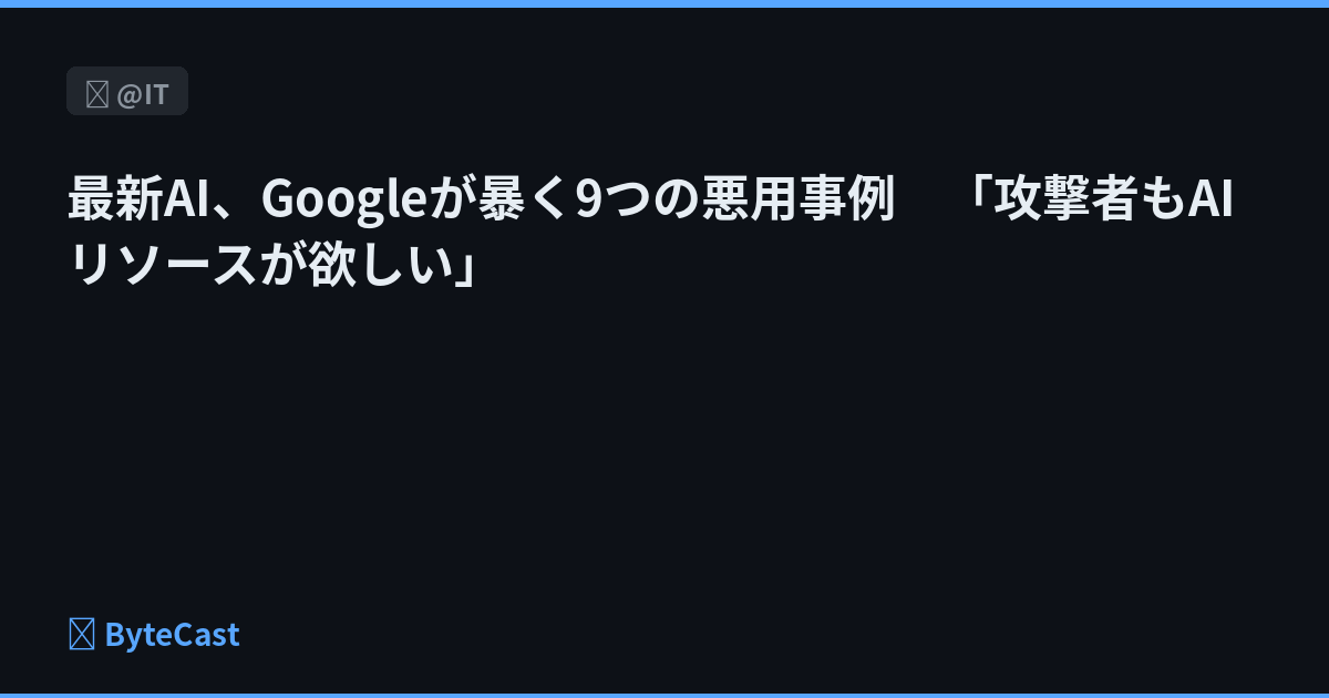 最新AI、Googleが暴く9つの悪用事例 「攻撃者もAIリソースが欲しい」