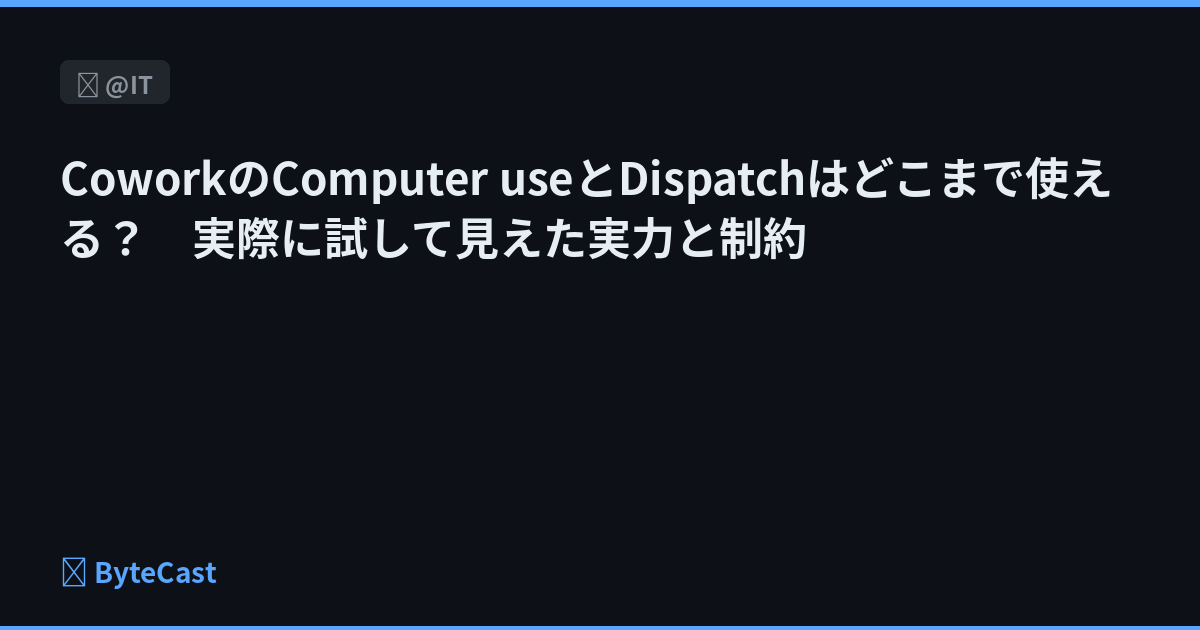 Claude CoworkとClaude Codeで新たにサポートされたComputer useとDispatch。これらはどんな機能で何に使えるのでしょうか。特にComputer useを使えば、これまでよりもはるかに多くのことができそうですが、ホントにそうなのでしょうか。