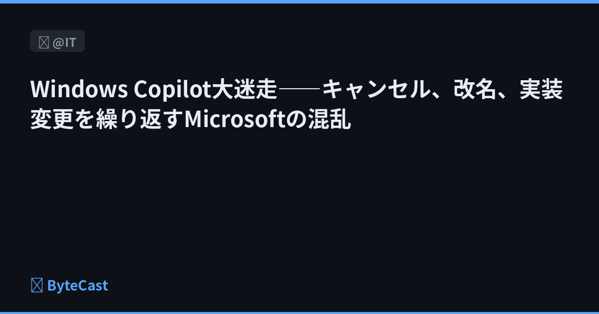 2024年の「Microsoft Build」で発表されたWindows向け「Copilot」機能のうち、3つがキャンセル、アプリの実装方式は5回変更。CEOは「うまく機能していない」と認め、責任者の交代と組織再編が発表されました。