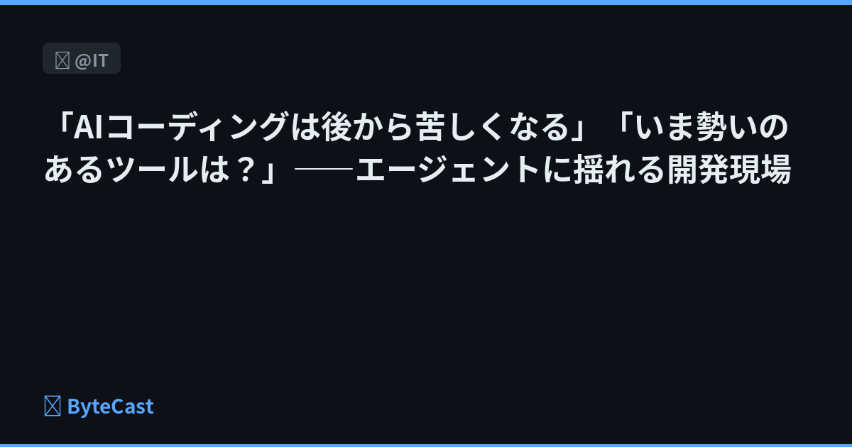 「AIコーディングは後から苦しくなる」「いま勢いのあるツールは?」――エージェントに揺れる開発現場