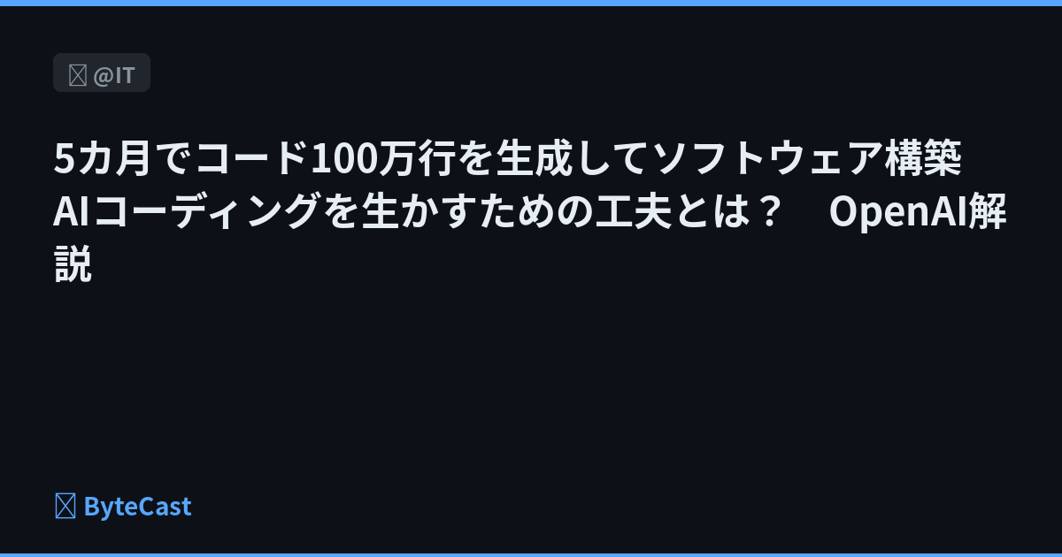 5カ月でコード100万行を生成してソフトウェア構築 AIコーディングを生かすための工夫とは? OpenAI解説