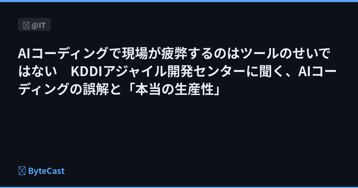 AIコーディングで現場が疲弊するのはツールのせいではない KDDIアジャイル開発センターに聞く、AIコーディングの誤解と「本当の生産性」