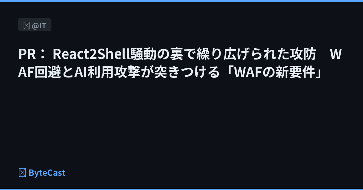 PR: React2Shell騒動の裏で繰り広げられた攻防 WAF回避とAI利用攻撃が突きつける「WAFの新要件」