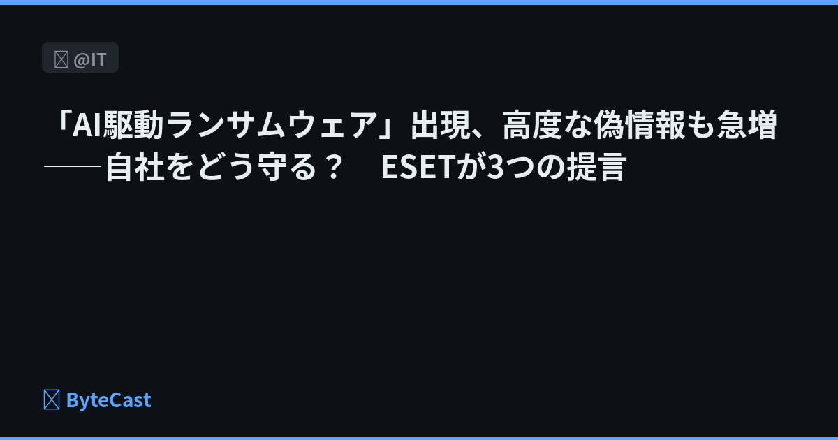 「AI駆動ランサムウェア」出現、高度な偽情報も急増――自社をどう守る? ESETが3つの提言