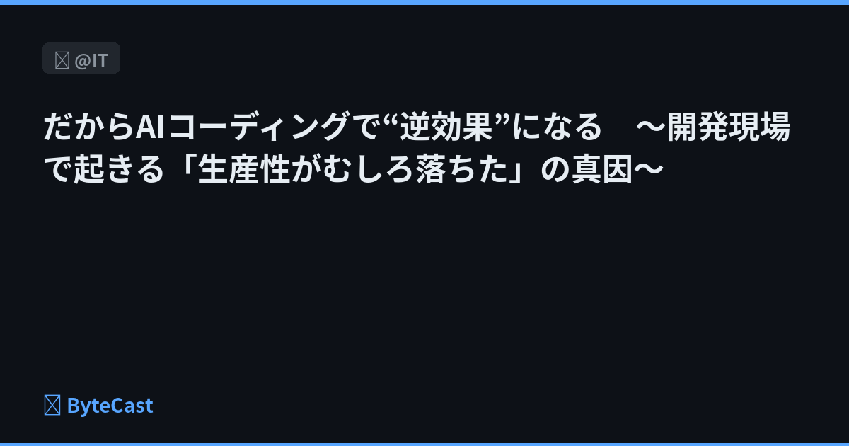 だからAIコーディングで“逆効果”になる ~開発現場で起きる「生産性がむしろ落ちた」の真因~