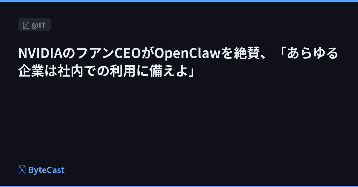 NVIDIAのフアンCEOがOpenClawを絶賛、「あらゆる企業は社内での利用に備えよ」