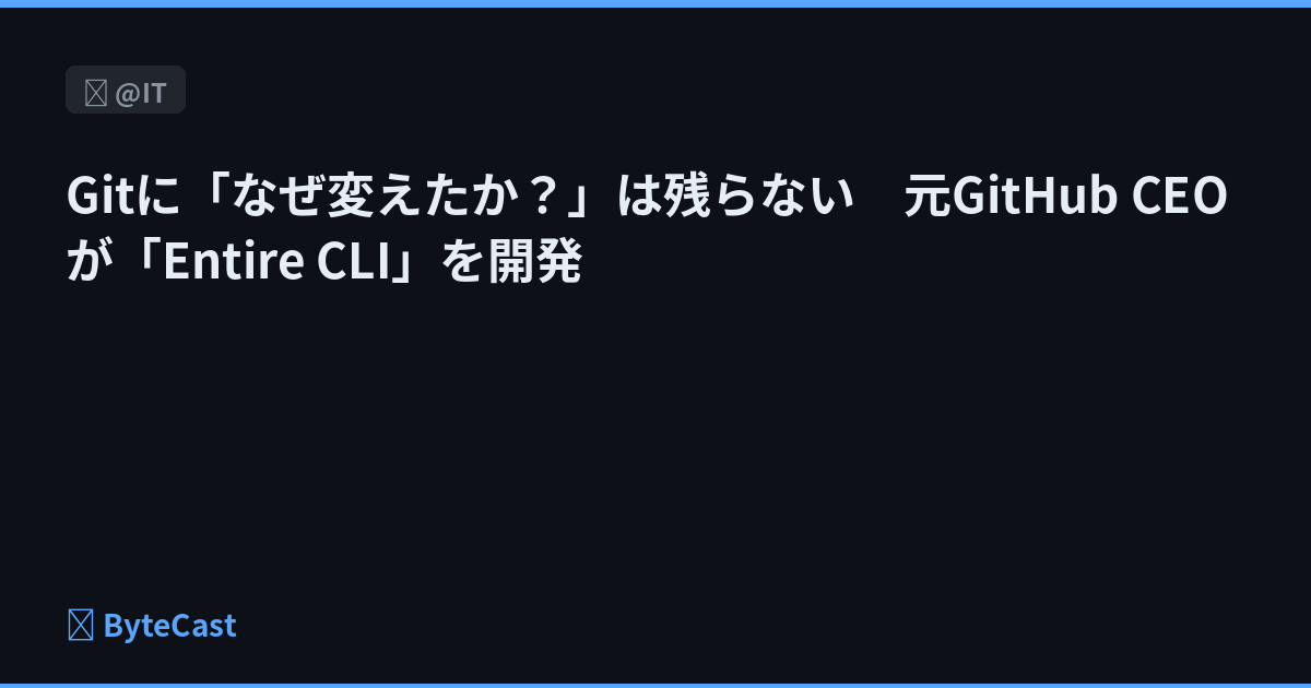 Gitに「なぜ変えたか?」は残らない 元GitHub CEOが「Entire CLI」を開発