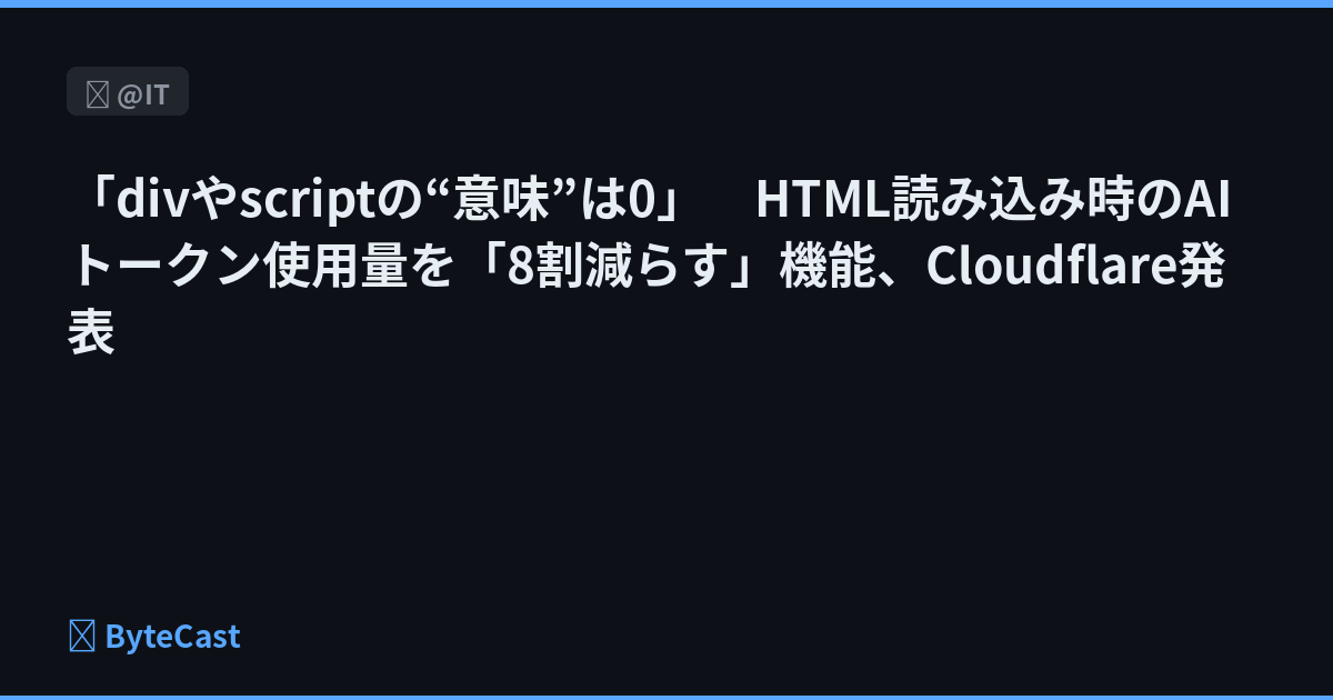 「divやscriptの“意味”は0」 HTML読み込み時のAIトークン使用量を「8割減らす」機能、Cloudflare発表