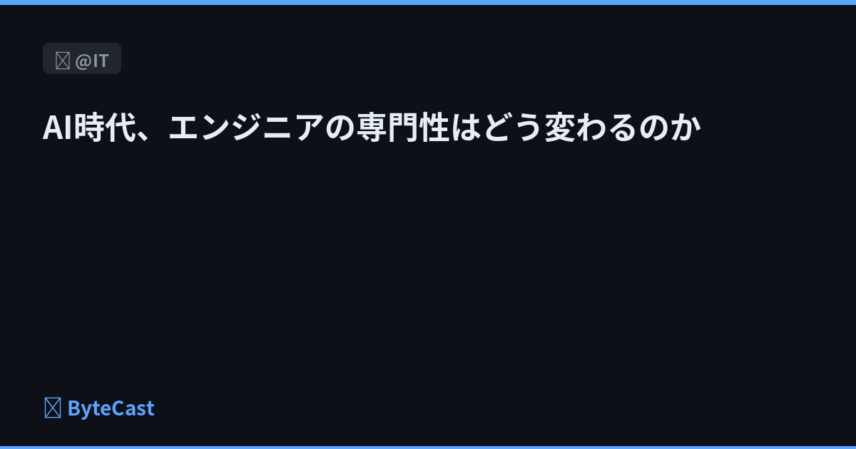 AIがコード生成やテストを自動化する時代、エンジニアに求められるスキルが根本的に変わる。キャリア戦略の再考が急務です。