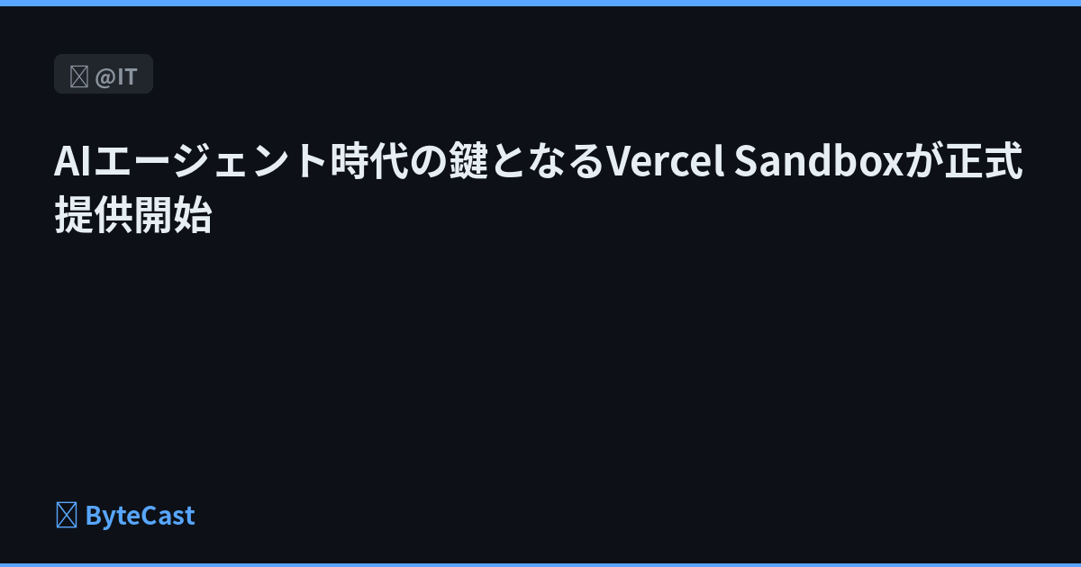 Vercelが超高速で自動消滅するAIエージェント向けコード実行環境を一般提供。エンジニアのAI開発フローが大きく変わる可能性がある。