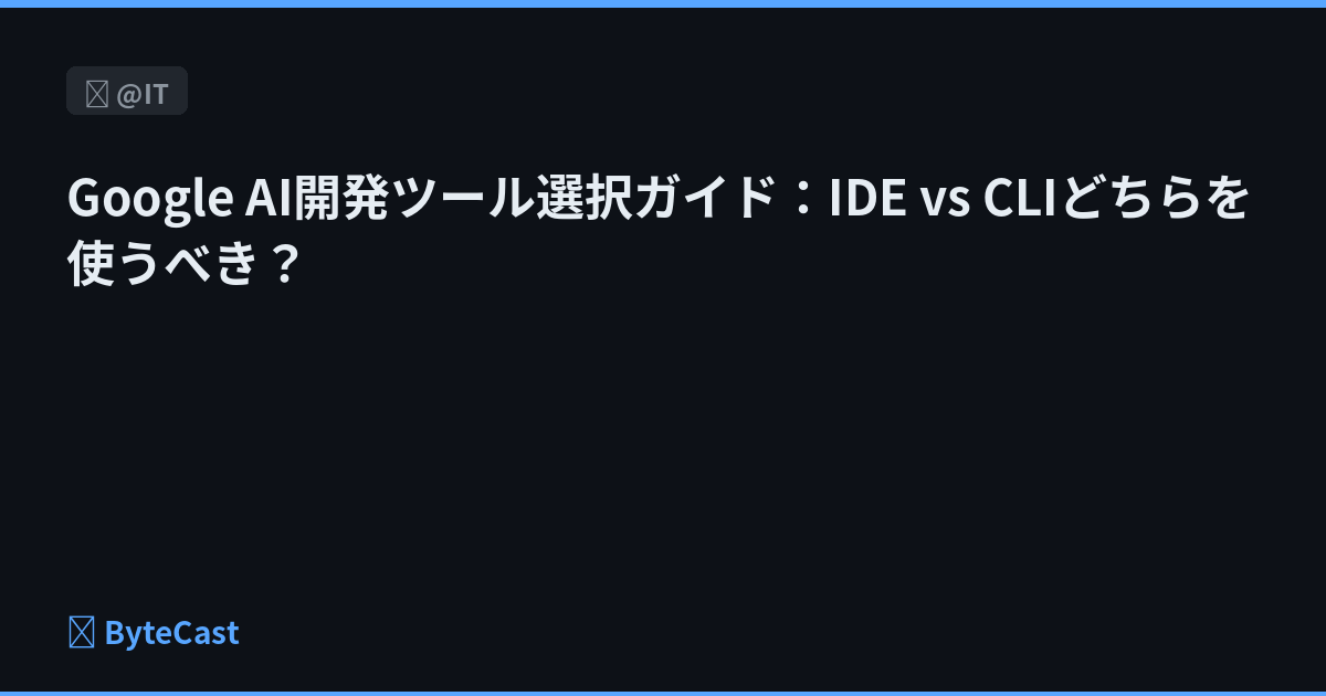 Google AI開発ツール選択ガイド:IDE vs CLIどちらを使うべき?