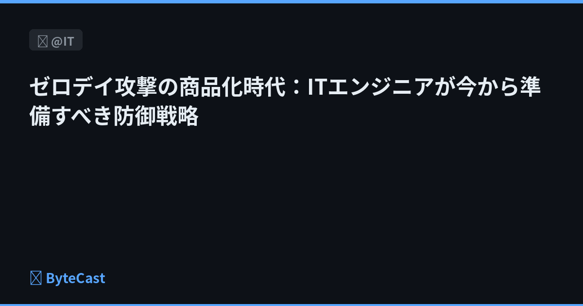 ゼロデイ攻撃の商品化時代:ITエンジニアが今から準備すべき防御戦略