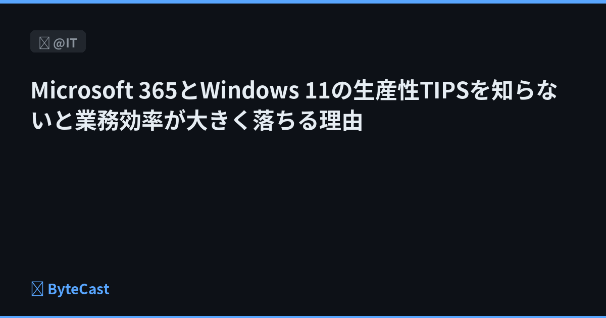 Microsoft 365とWindows 11の生産性TIPSを知らないと業務効率が大きく落ちる理由