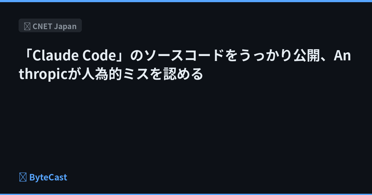 「Claude Code」のソースコードをうっかり公開、Anthropicが人為的ミスを認める