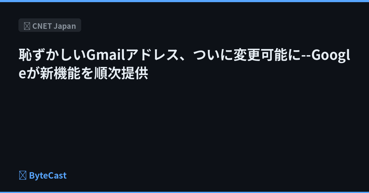 昔のあだ名や、その時のノリで付けた単語、今となっては意味の分からない数字――。そんなGmailアドレスを使い続けてきた人に朗報だ。Googleが、Gmailアドレスの「@gmail.com」より前のユーザー名を変更できる機能の提供を始めた。