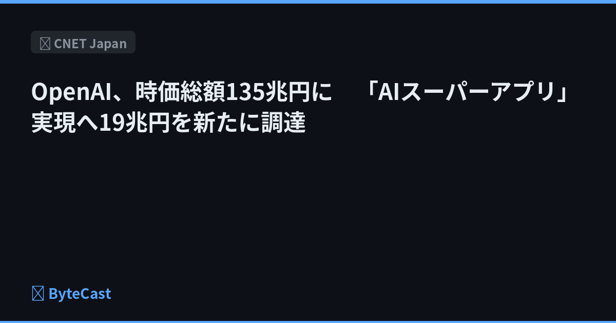 OpenAI、時価総額135兆円に 「AIスーパーアプリ」実現へ19兆円を新たに調達