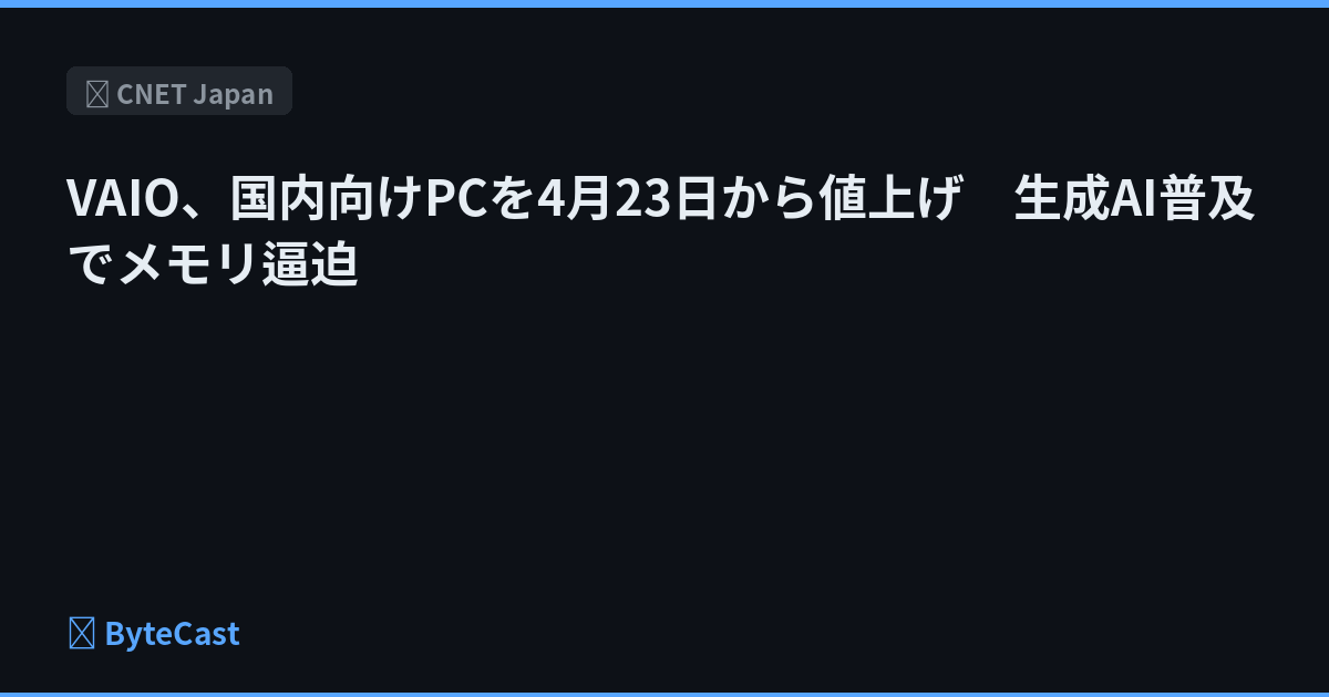 VAIO、国内向けPCを4月23日から値上げ 生成AI普及でメモリ逼迫
