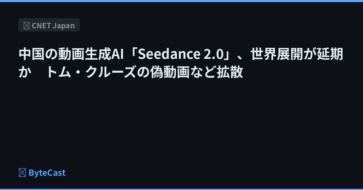 中国の動画生成AI「Seedance 2.0」、世界展開が延期か トム・クルーズの偽動画など拡散