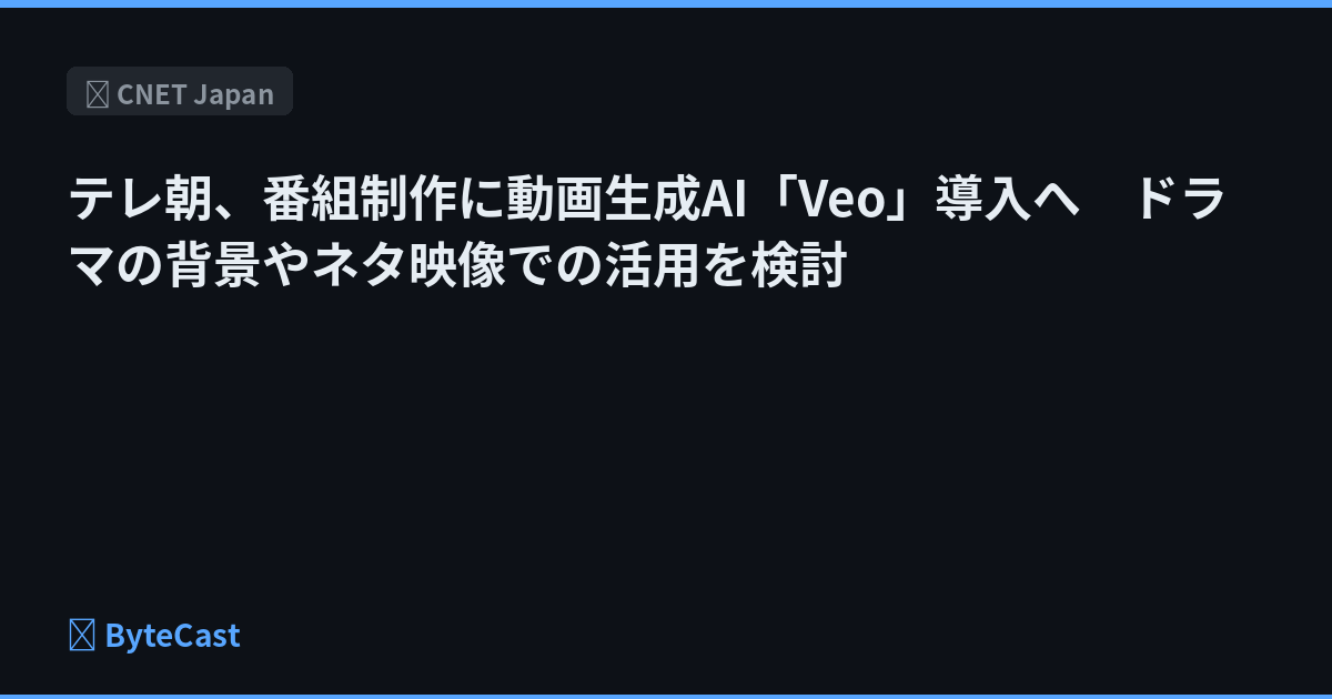 テレ朝、番組制作に動画生成AI「Veo」導入へ ドラマの背景やネタ映像での活用を検討