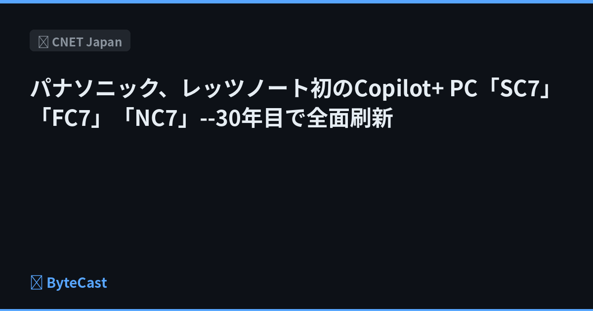 パナソニック、レッツノート初のCopilot+ PC「SC7」「FC7」「NC7」--30年目で全面刷新