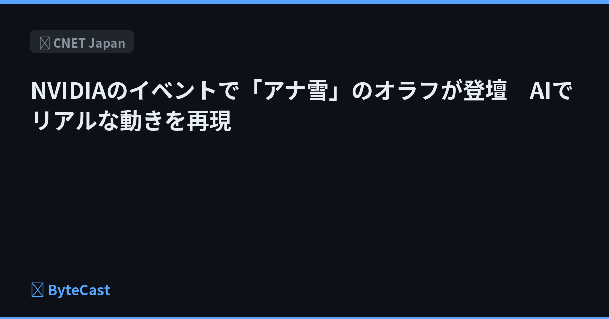 NVIDIAが開催中のカンファレンス「GTC 2026」で、映画「アナと雪の女王」に登場するオラフのロボットがCEOとともに登場した。