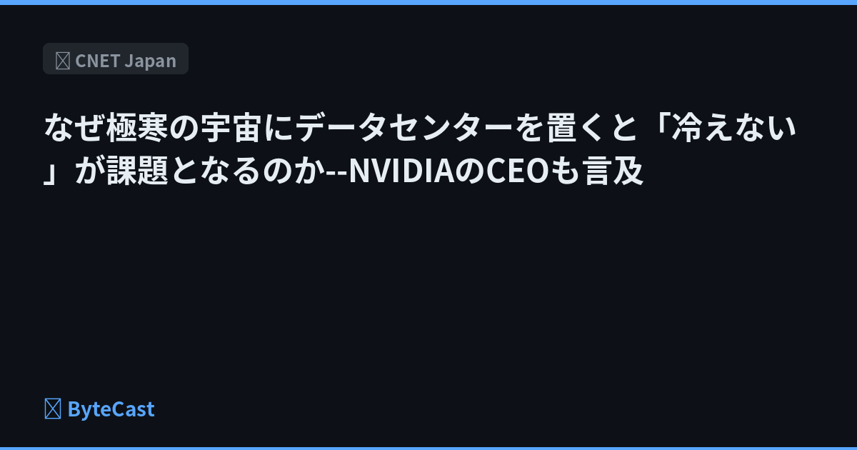 なぜ極寒の宇宙にデータセンターを置くと「冷えない」が課題となるのか--NVIDIAのCEOも言及