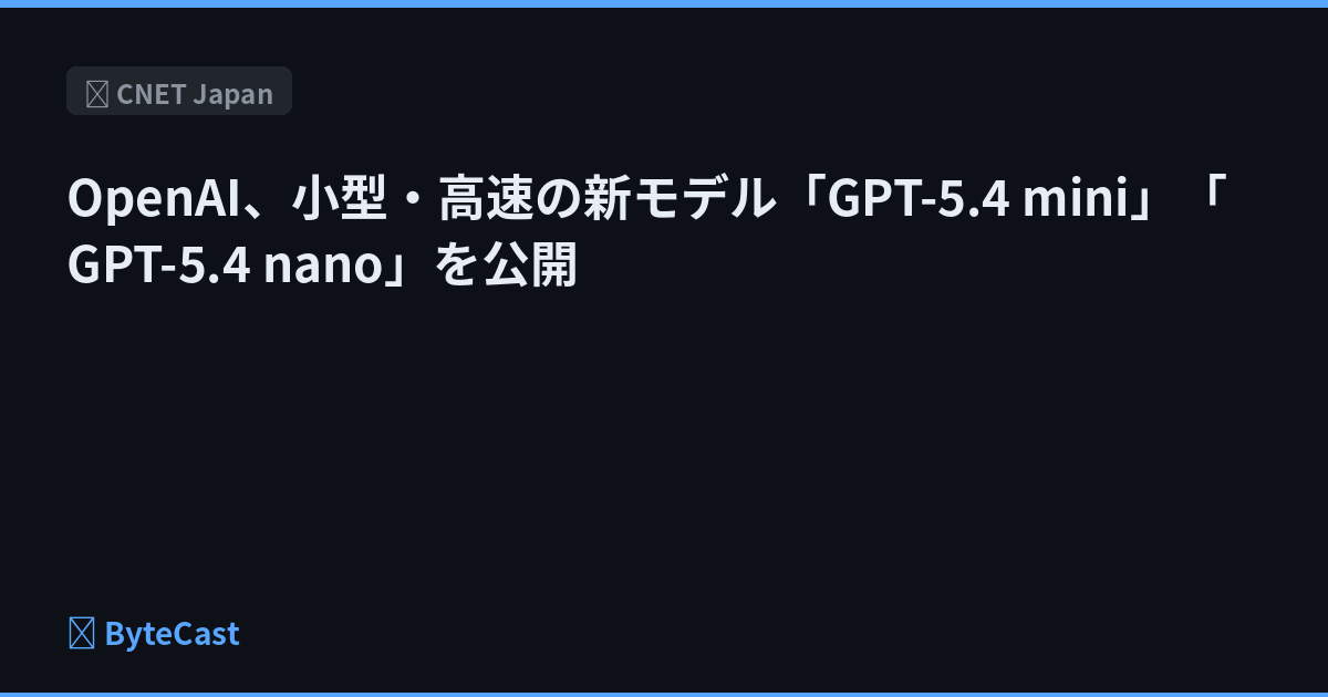 OpenAIは米国時間3月17日、最新AIモデル「GPT-5.4 mini」「GPT-5.4 nano」を公開した。3月に入って登場した「GPT-5.4」の小型かつ高速なバージョンだ。