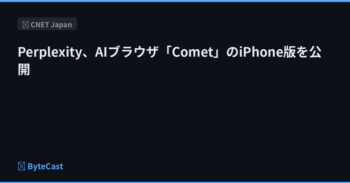 Perplexityは、AI搭載ブラウザー「Comet」のiOS版を18日に公開した。これにより、iPhone利用者も、デスクトップ版やAndroid版と同様に、ブラウザー内でAIアシスタントによる回答や調査支援を受けられるようになった。