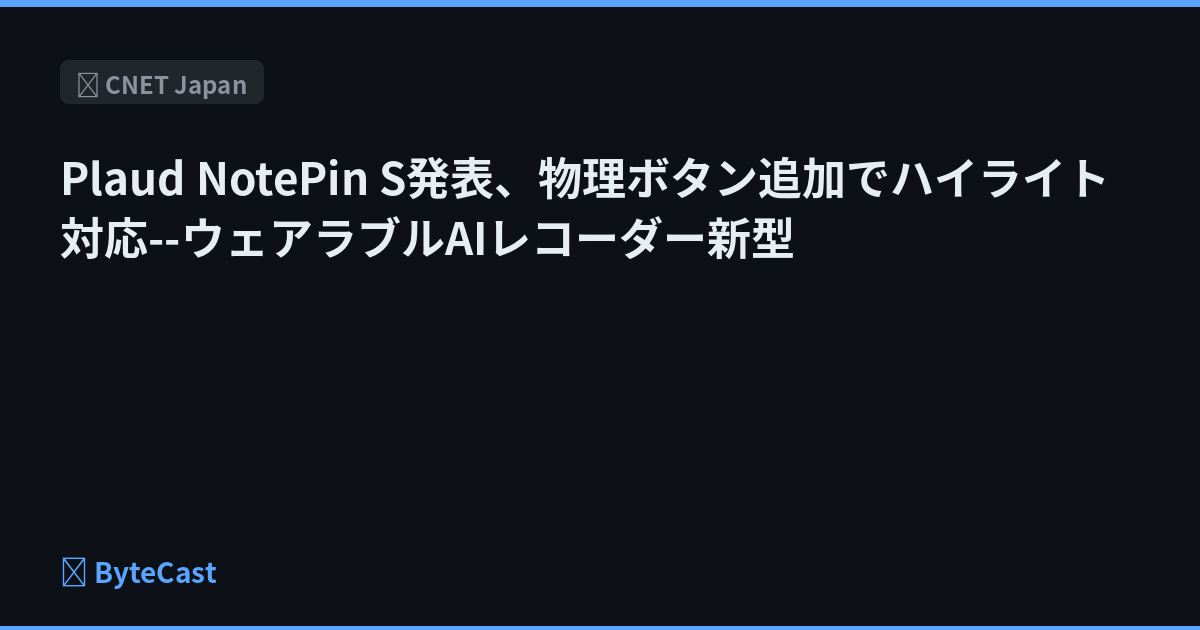 PLAUDがウェアラブルAIレコーダー「Plaud NotePin S」を2万8600円で発売する。ボタン操作でハイライト記録が可能になり、4種類のアクセサリーを同梱。日本ユーザーのデータはAWS東京リージョンで保管し、法人利用のハードルを下げた。