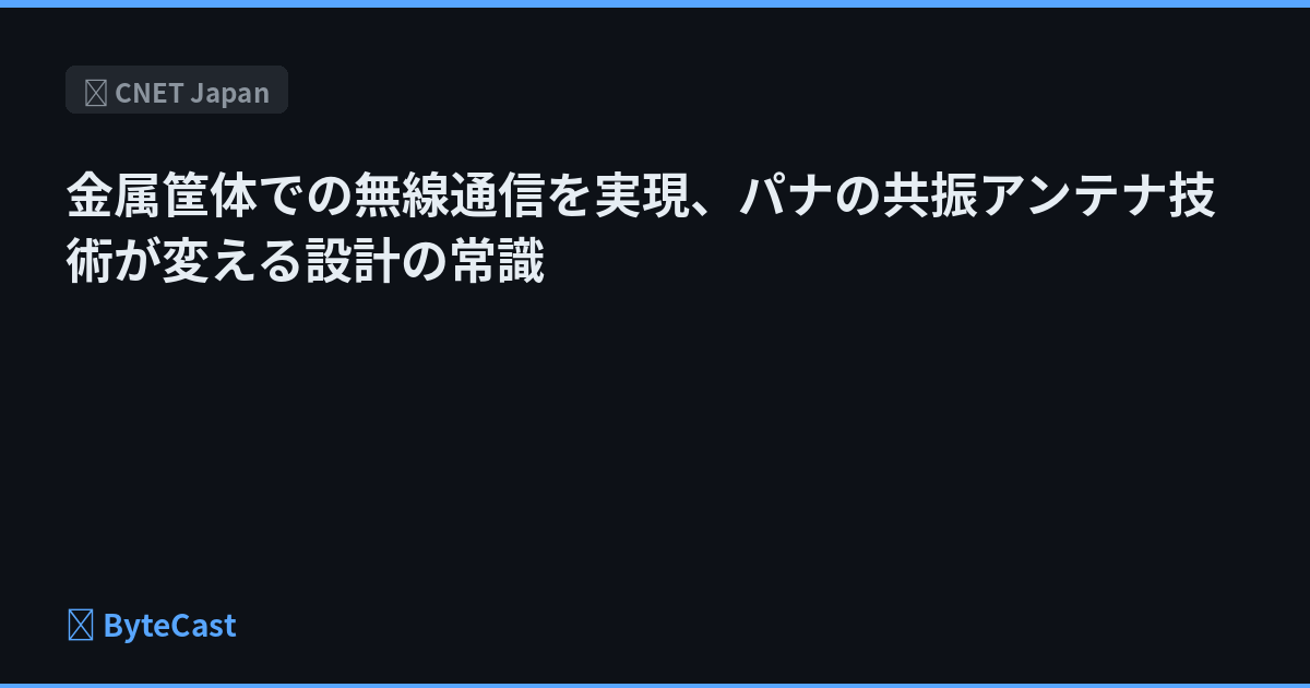パナソニック エレクトリックワークスが金属筐体を共振現象でアンテナ化する「金属ロバストアンテナ」を開発。IoTデバイスやエッジコンピューティング機器の設計自由度が大幅に向上する可能性。