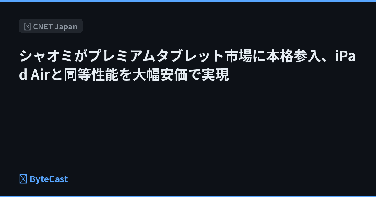 シャオミがプレミアムタブレット市場に本格参入、iPad Airと同等性能を大幅安価で実現